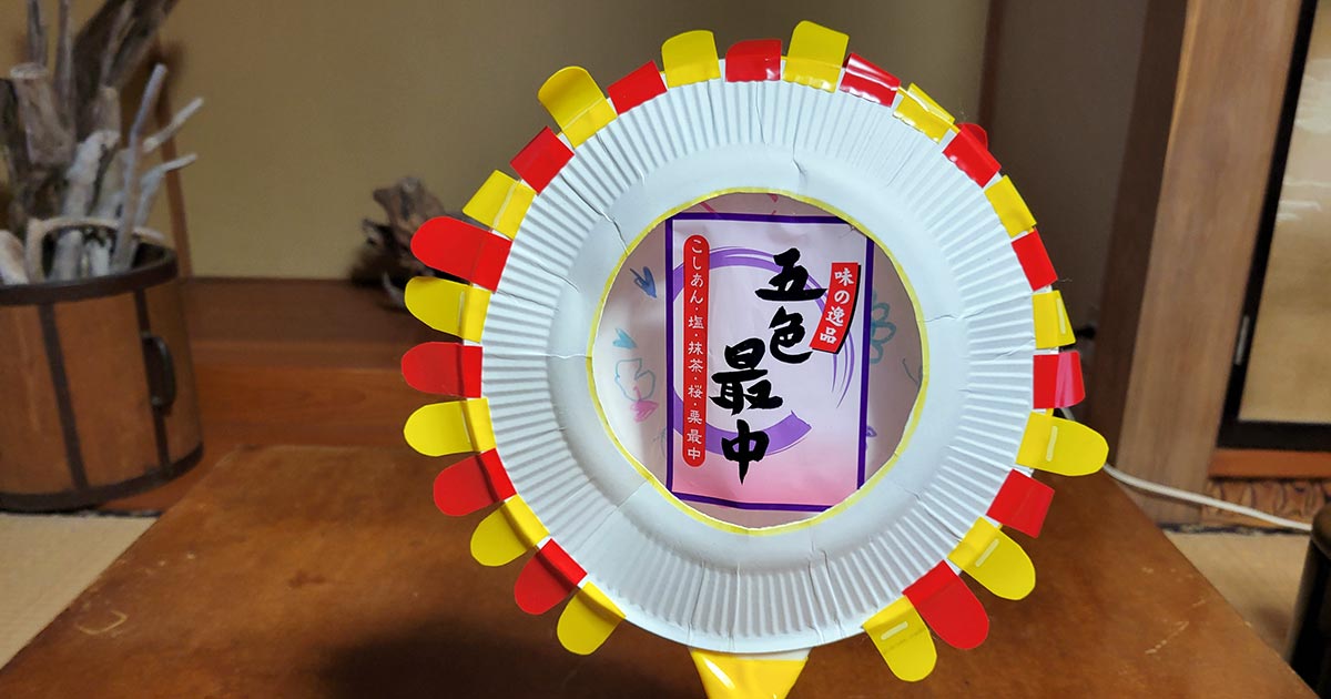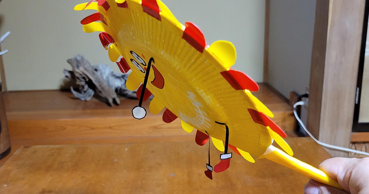 しゃもじは穴を開けたほうの紙皿にくっつけると強度的な問題が発生します。